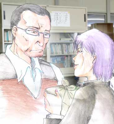 某友人の学園ものパラレルの1シーン。 ノックスが社会科教師で、ロイが生徒というシチュエーションです。 ボールペン描画に水彩色鉛筆で彩色・・教室っぽい写真を取り込んで、背景にペタリと・・SSにもなっていないけど、このシーンの会話を捏造してみたので、よろしければどうぞ。 (初出:06年01月02日) ▼下方にもイラスト、何枚かありますので(掲載順不同)、よろしかったら御笑覧あれ。 |
